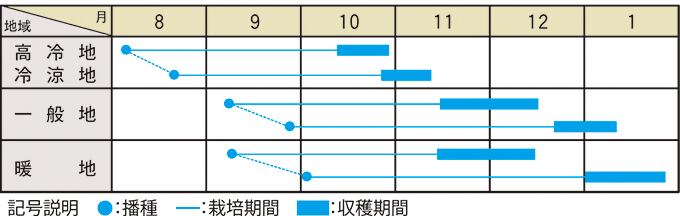 ・根重で2.0kg以上の収穫をねらう際など長期間圃場で栽培する場合は、土壌の過乾燥に注意して下さい。