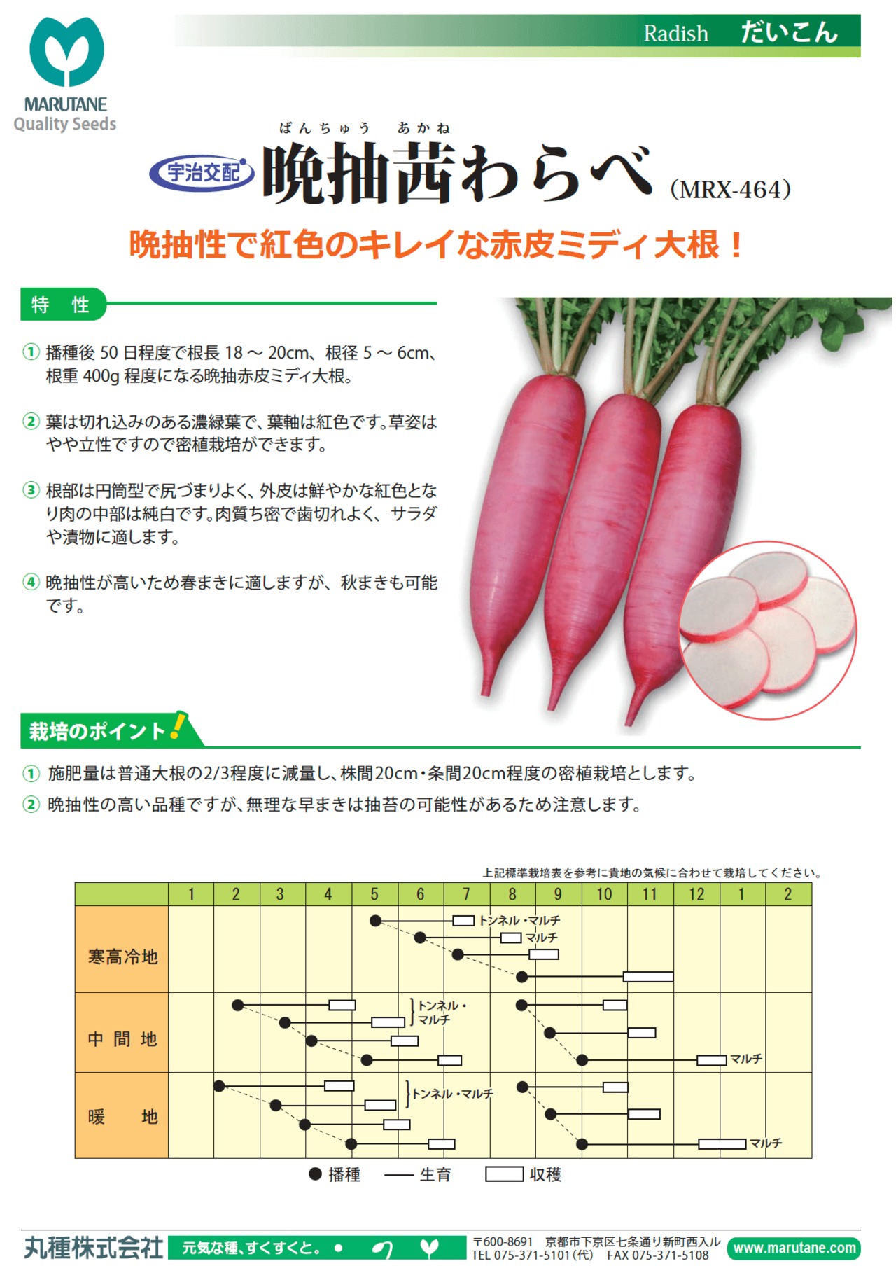 ●晩抽性で紅色のキレイな赤皮ミディ大根!