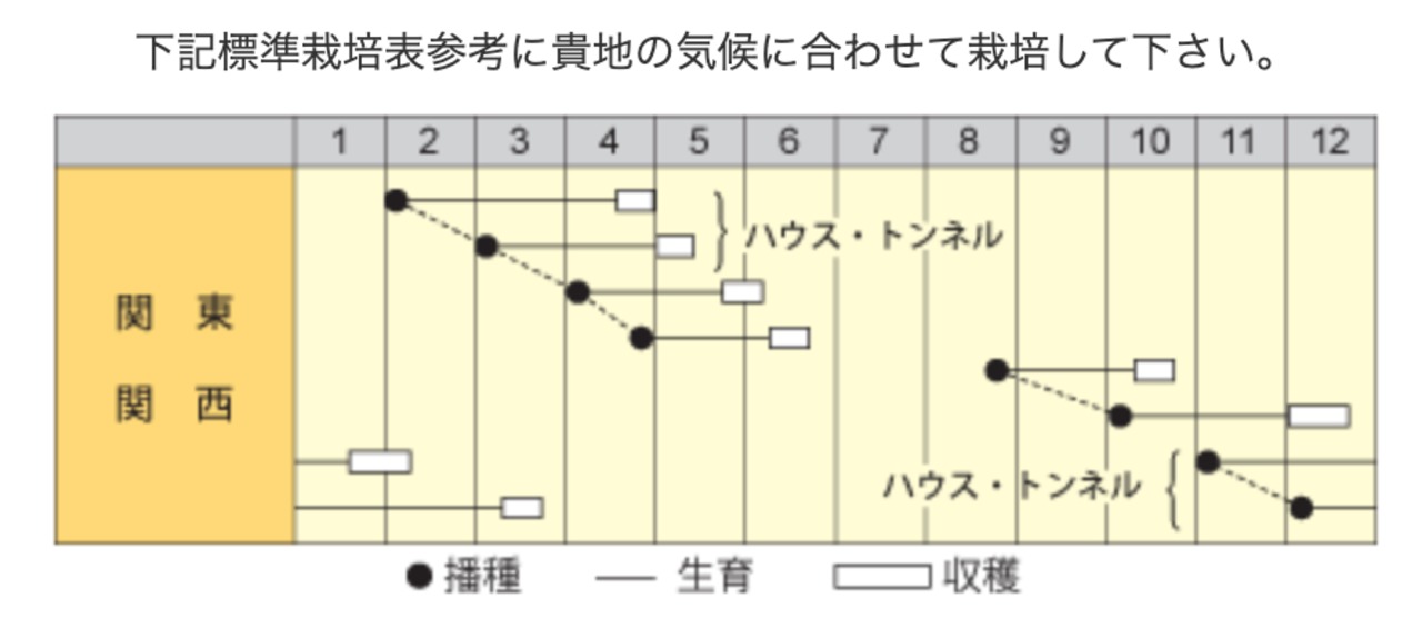 ①2月播き(ハウス・トンネル) ②3月播き(ハウス・トンネル) ③4月播き