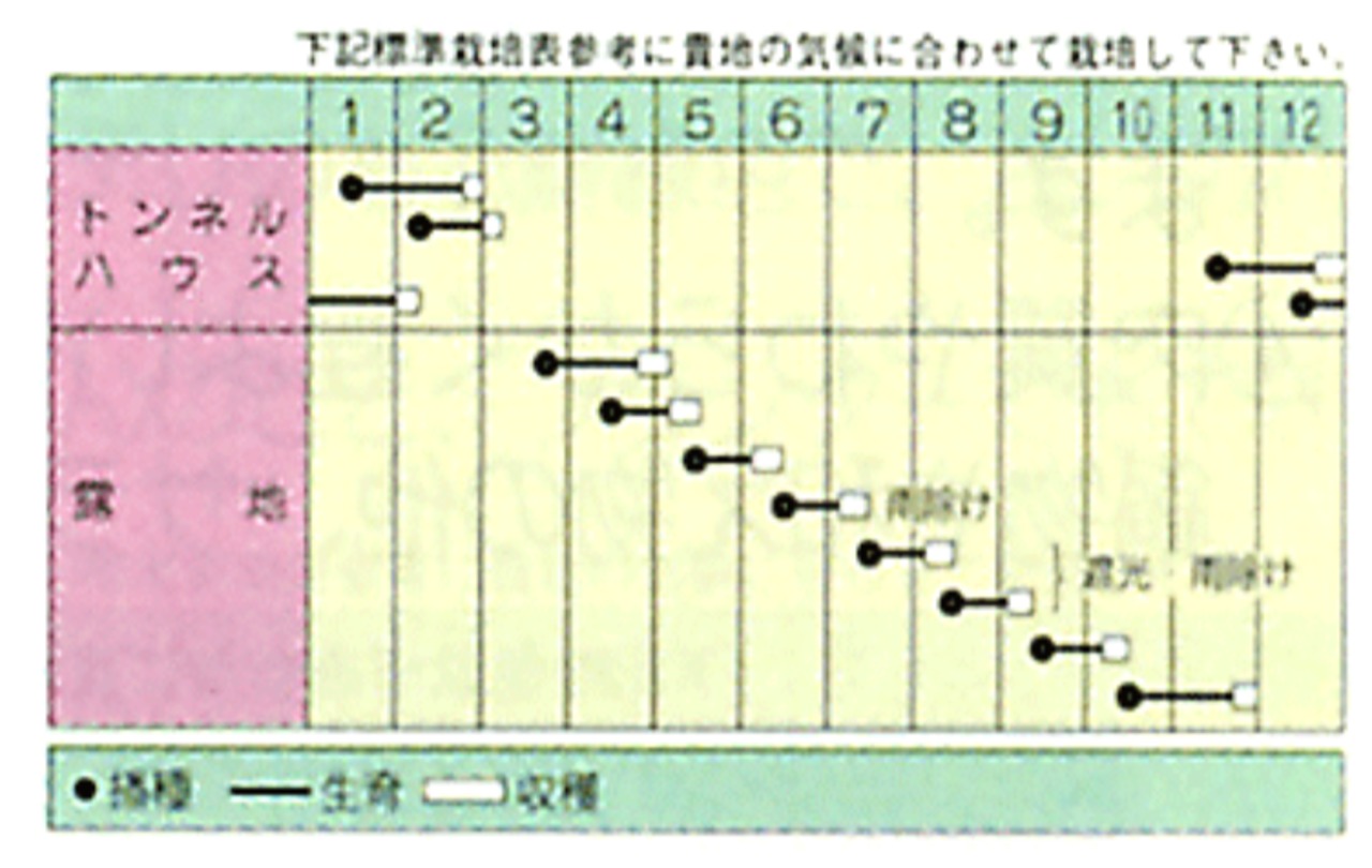 ・トンネル/ハウス:2月収穫、3月収穫、12月収穫、翌2月収穫