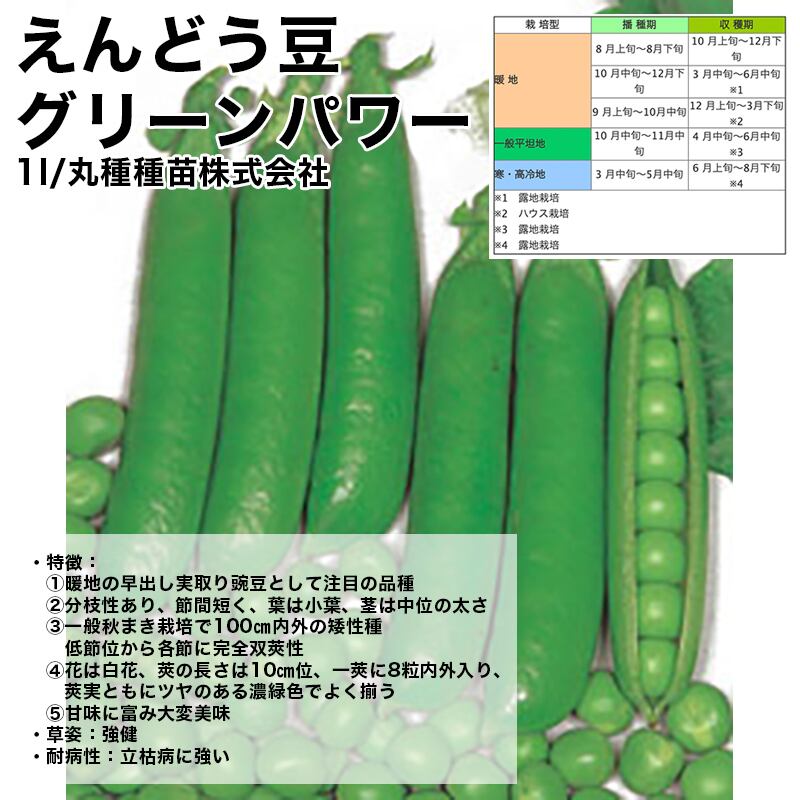 ※秋まき春どりはもちろんのこと、夏まきして晩秋・冬どりにも最適の極早生実取り豌豆です。