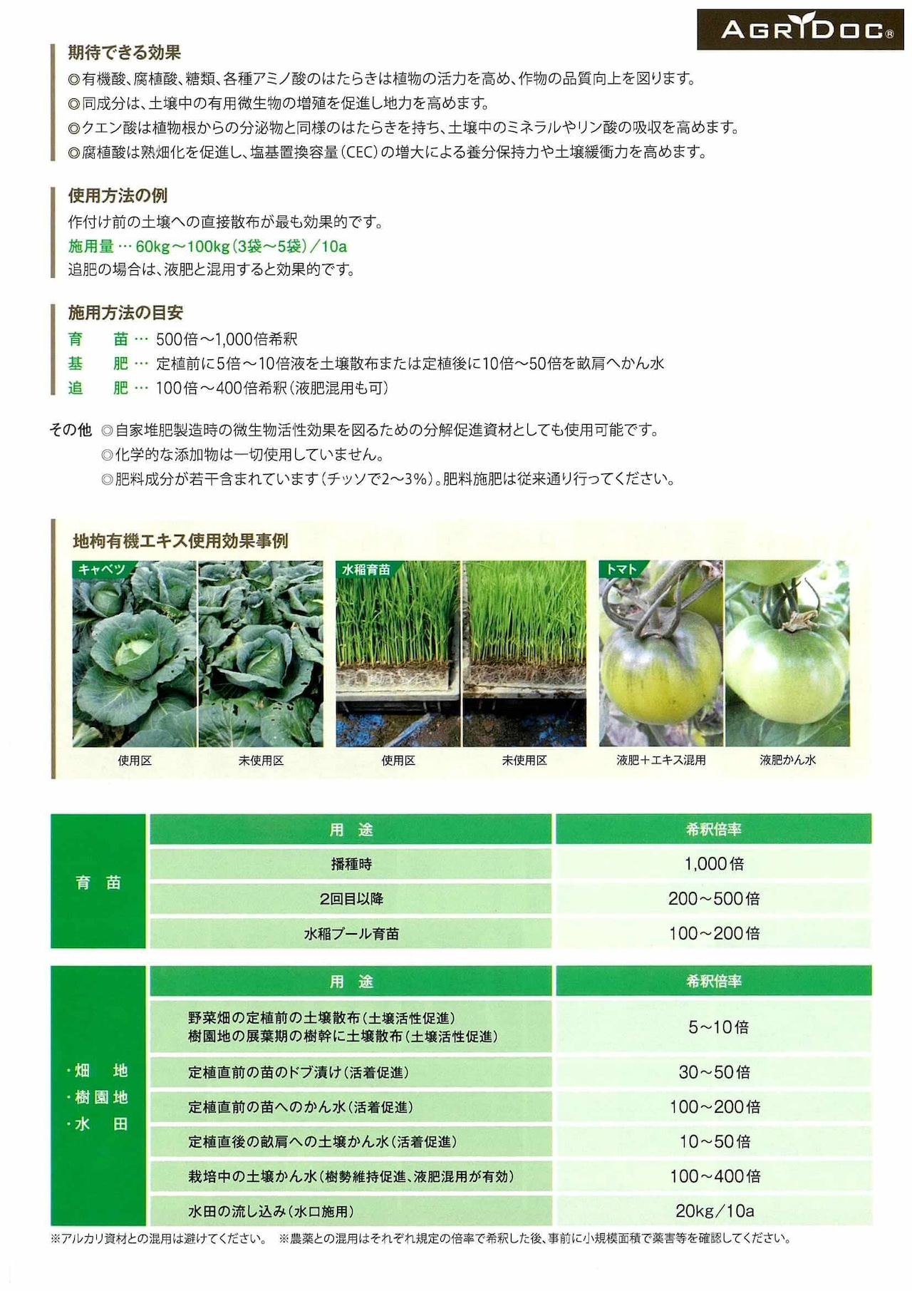 ※アルカリ資材との混用は避けてください。