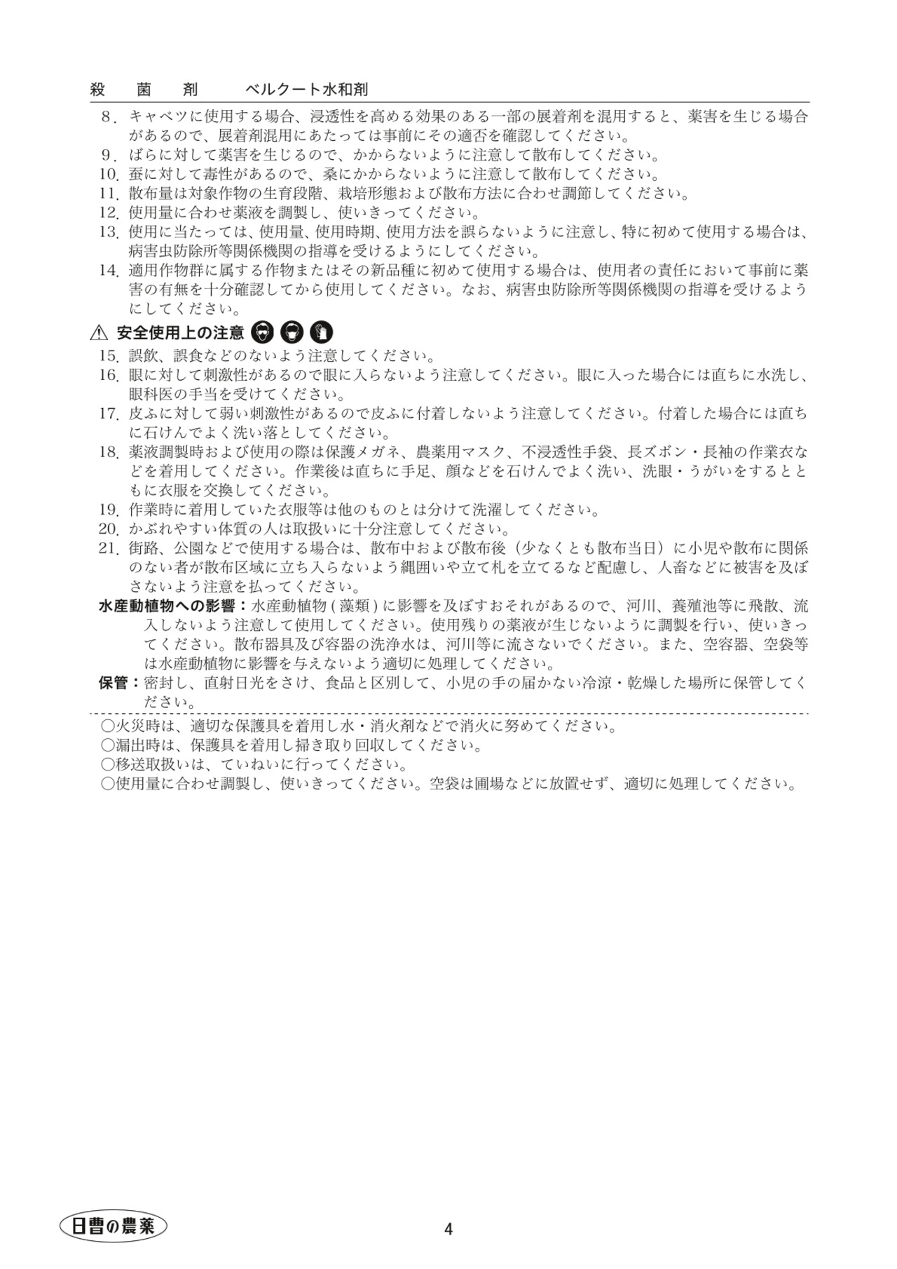 ・作物に対する安全性が高く、登録作物の多い使いやすい薬剤です。