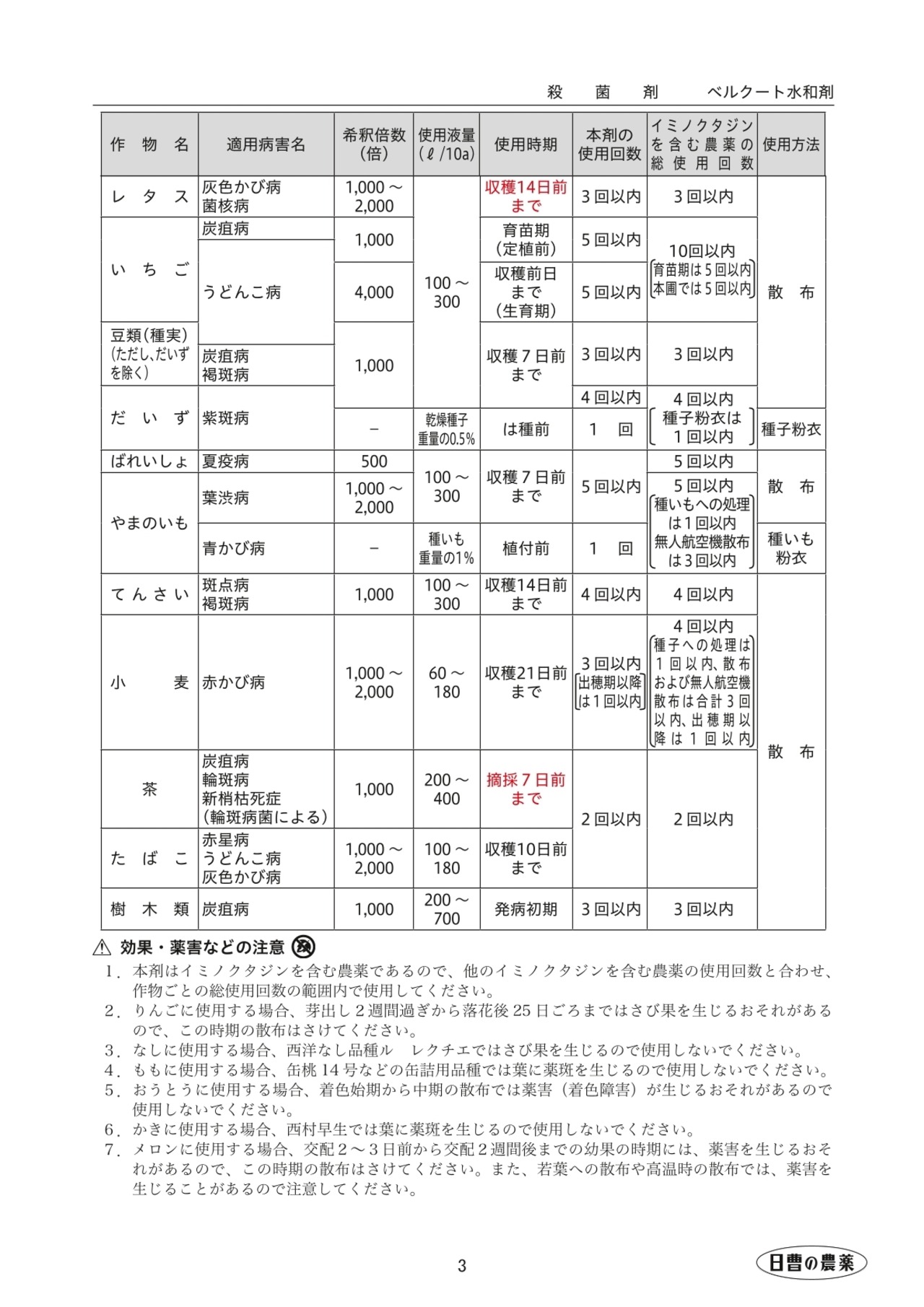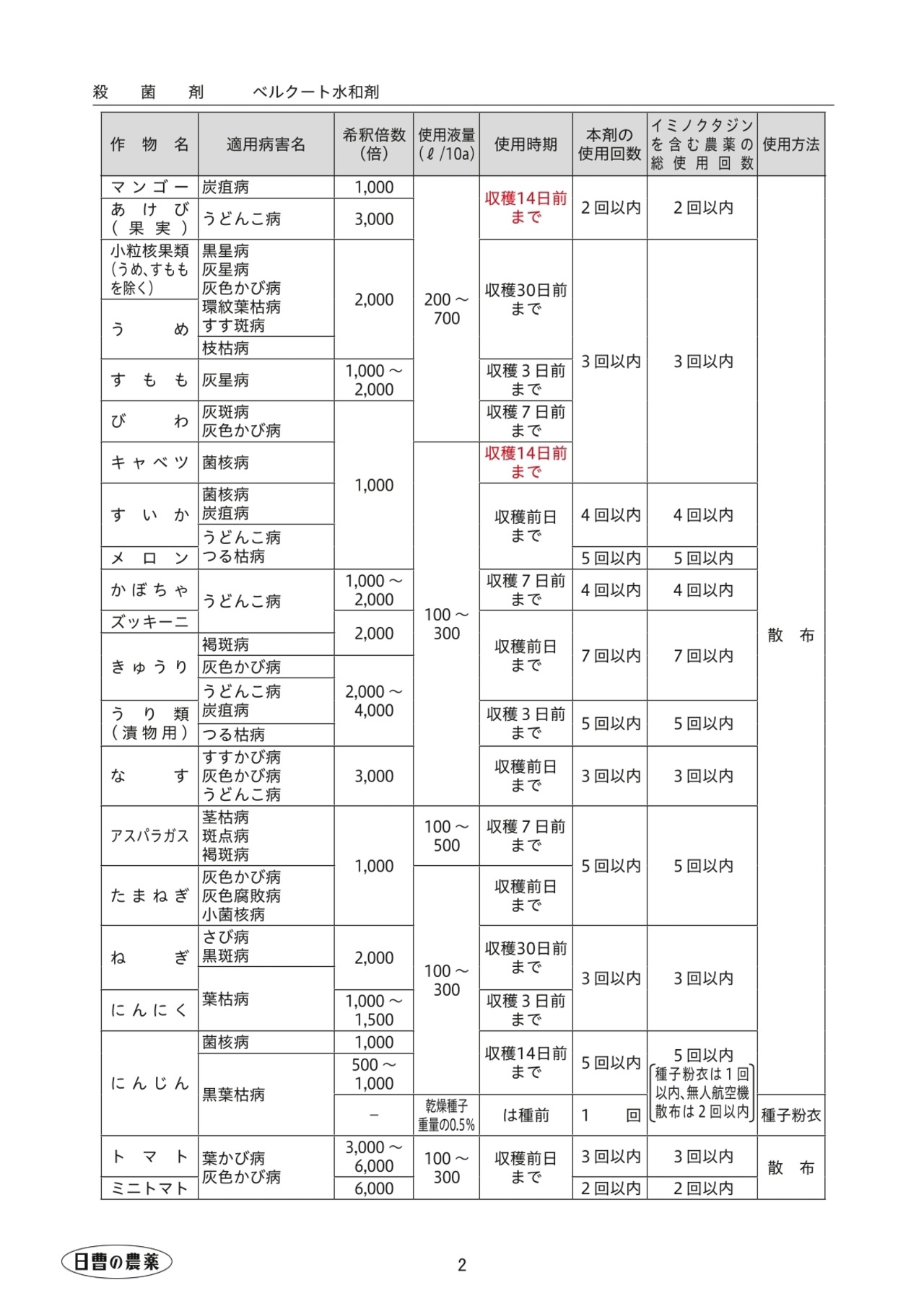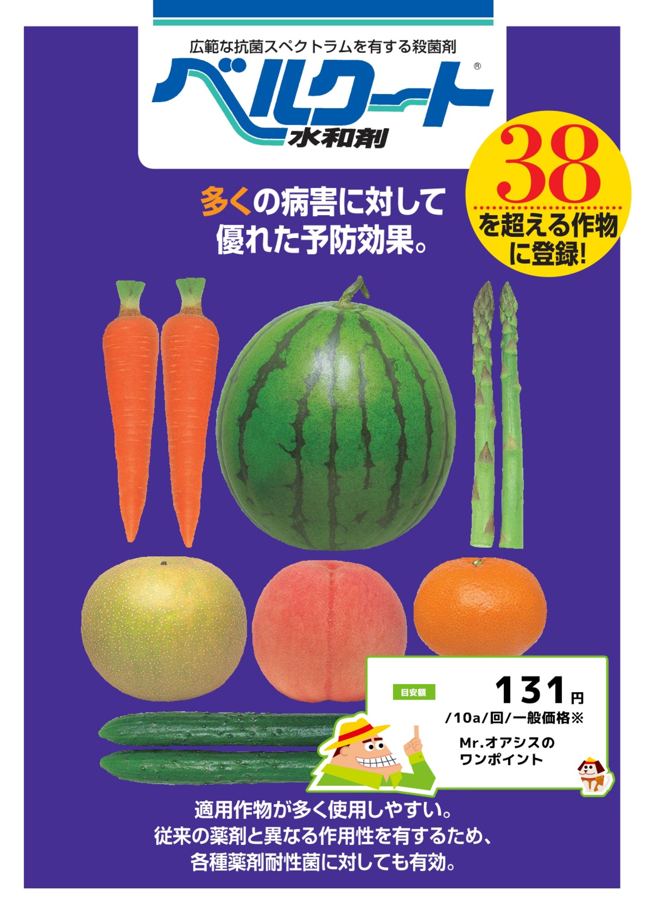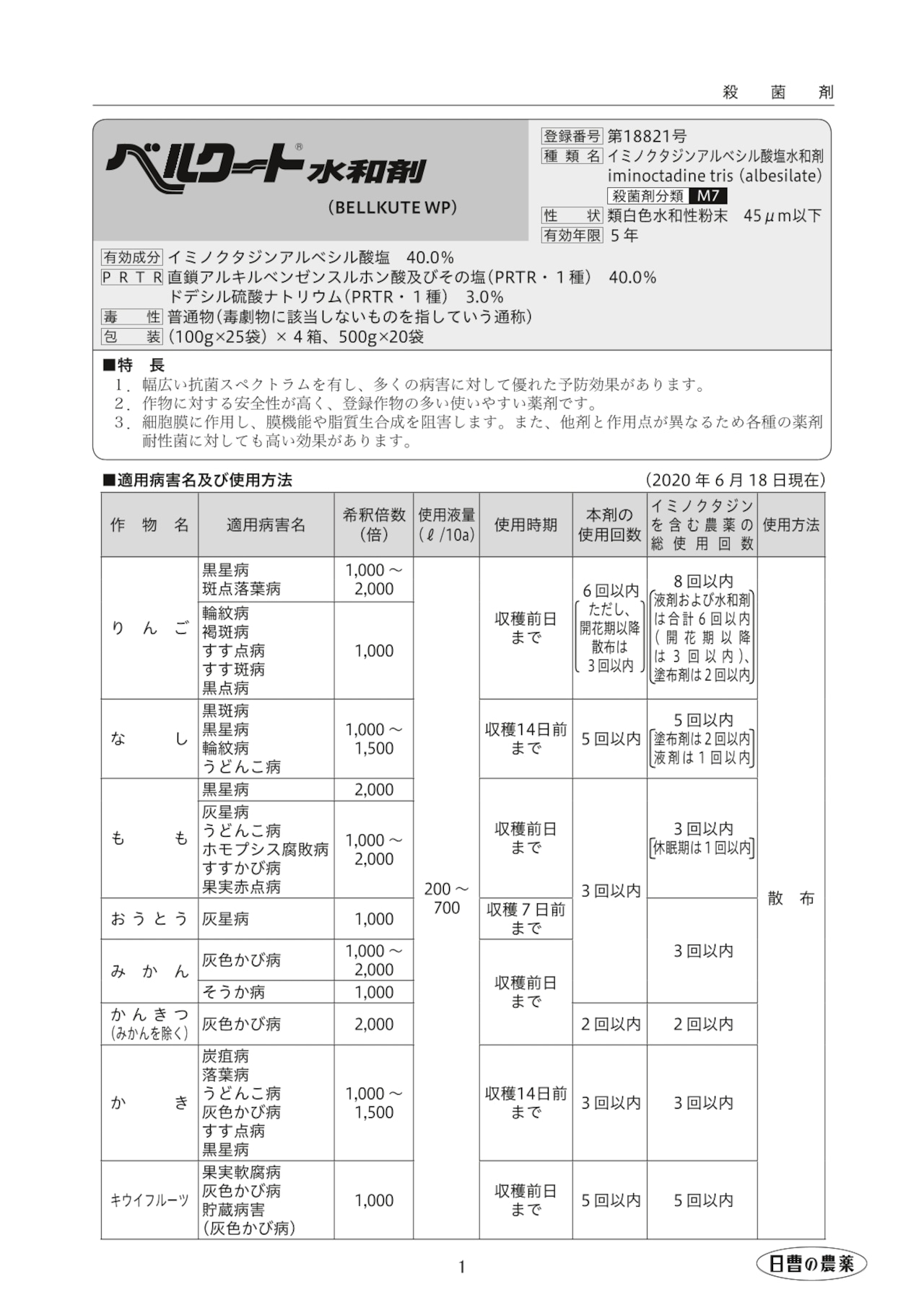 ・作物に対する安全性が高く、登録作物の多い使いやすい薬剤です。