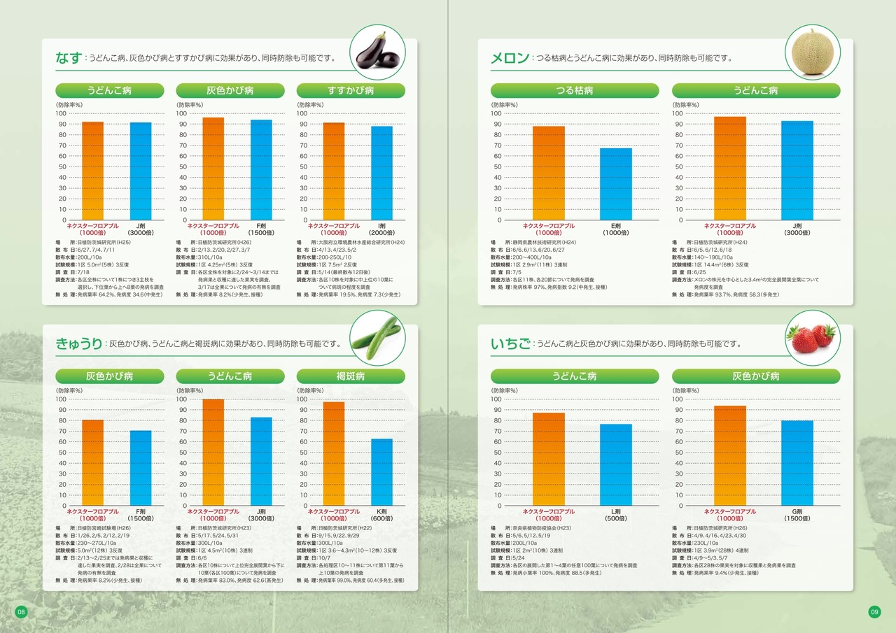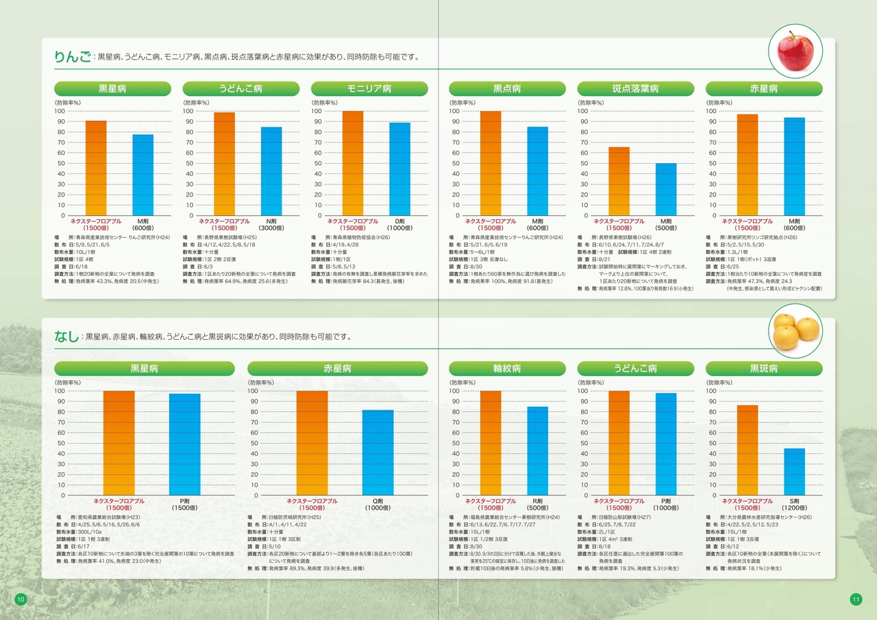 ・適用病害に高活性、だから効果が長期間持続、余裕を持ったローテーション散布を実現します。