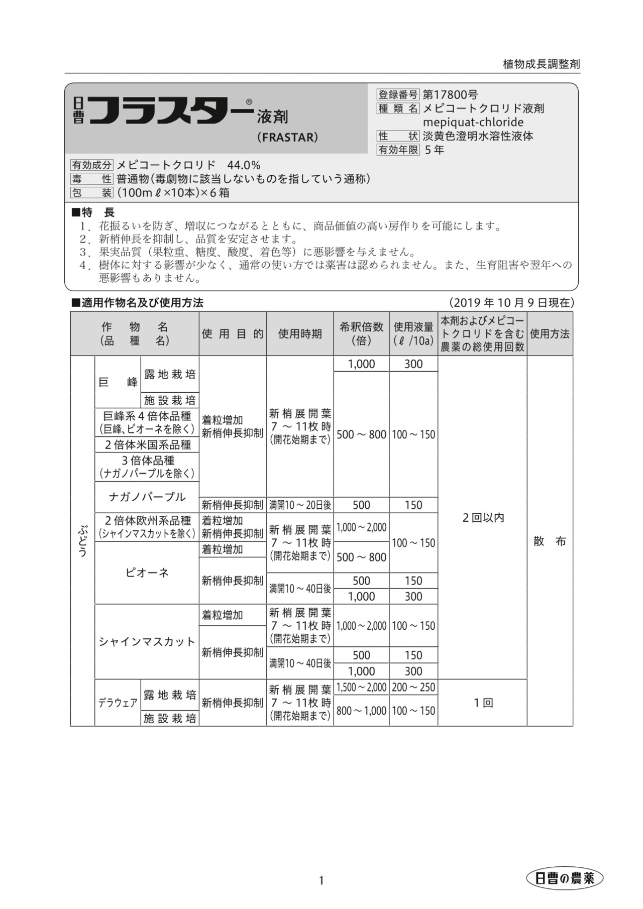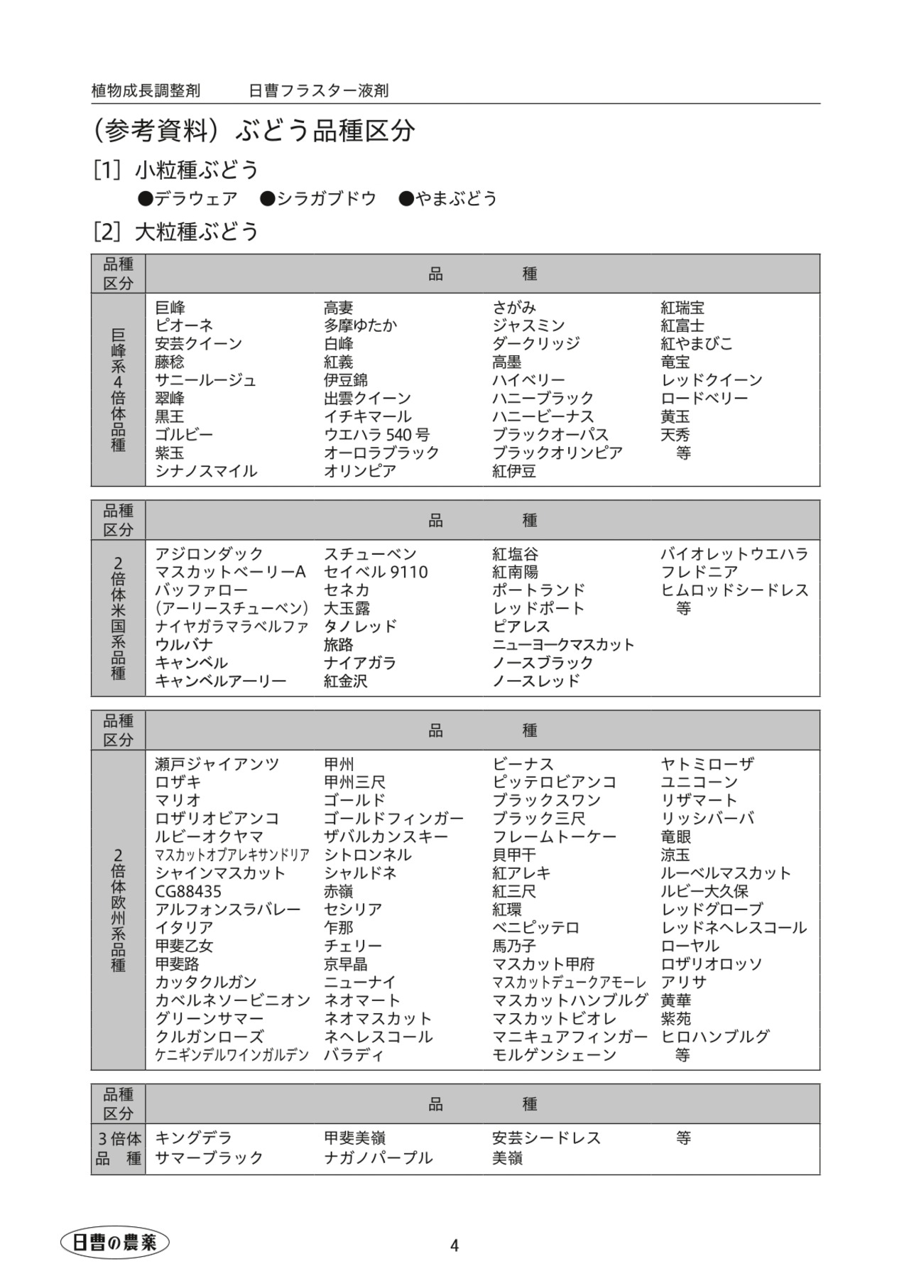 ・果実品質(果粒重、糖度、酸度、着色等)に悪影響を与えません。
