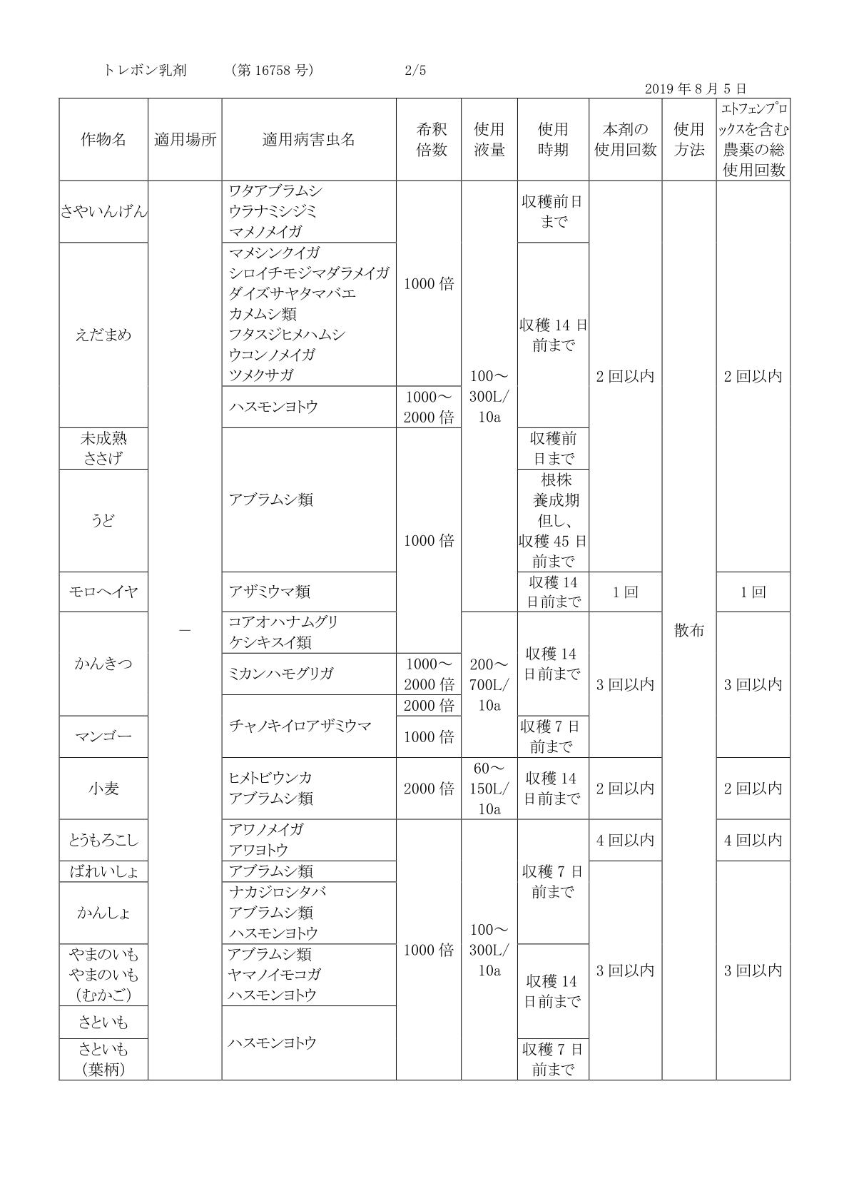 (2)蚕に対して長期間毒性があるので、近くに桑園がある場合には絶対に桑葉にかからないようにすること。