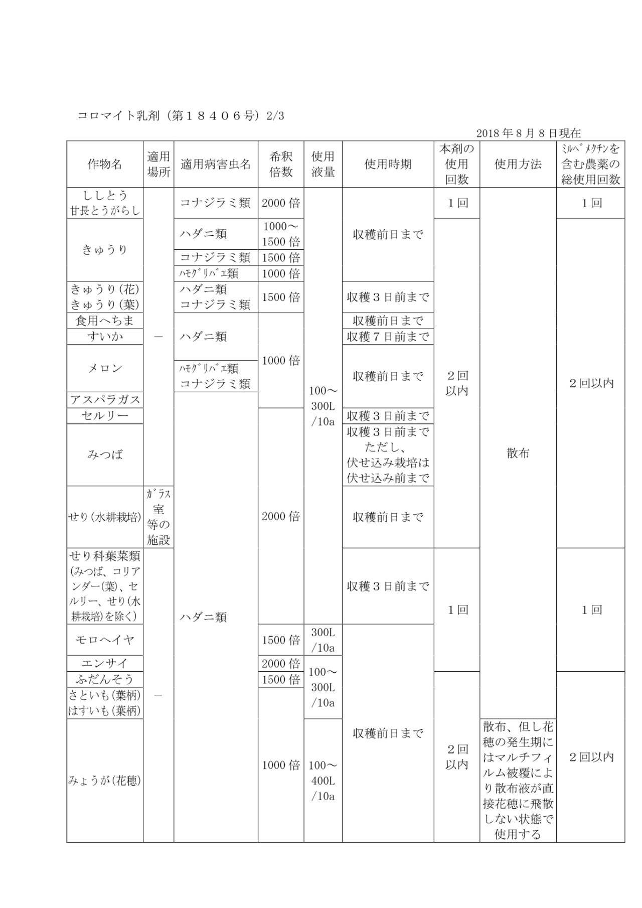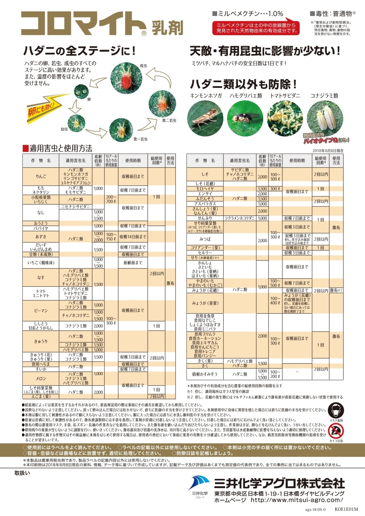 ・有効成分であるミルベメクチンは微生物が生産する天然物なので、「特別栽培農産物に係る表示ガイドライン」において、化学合成農薬にはカウントされません。