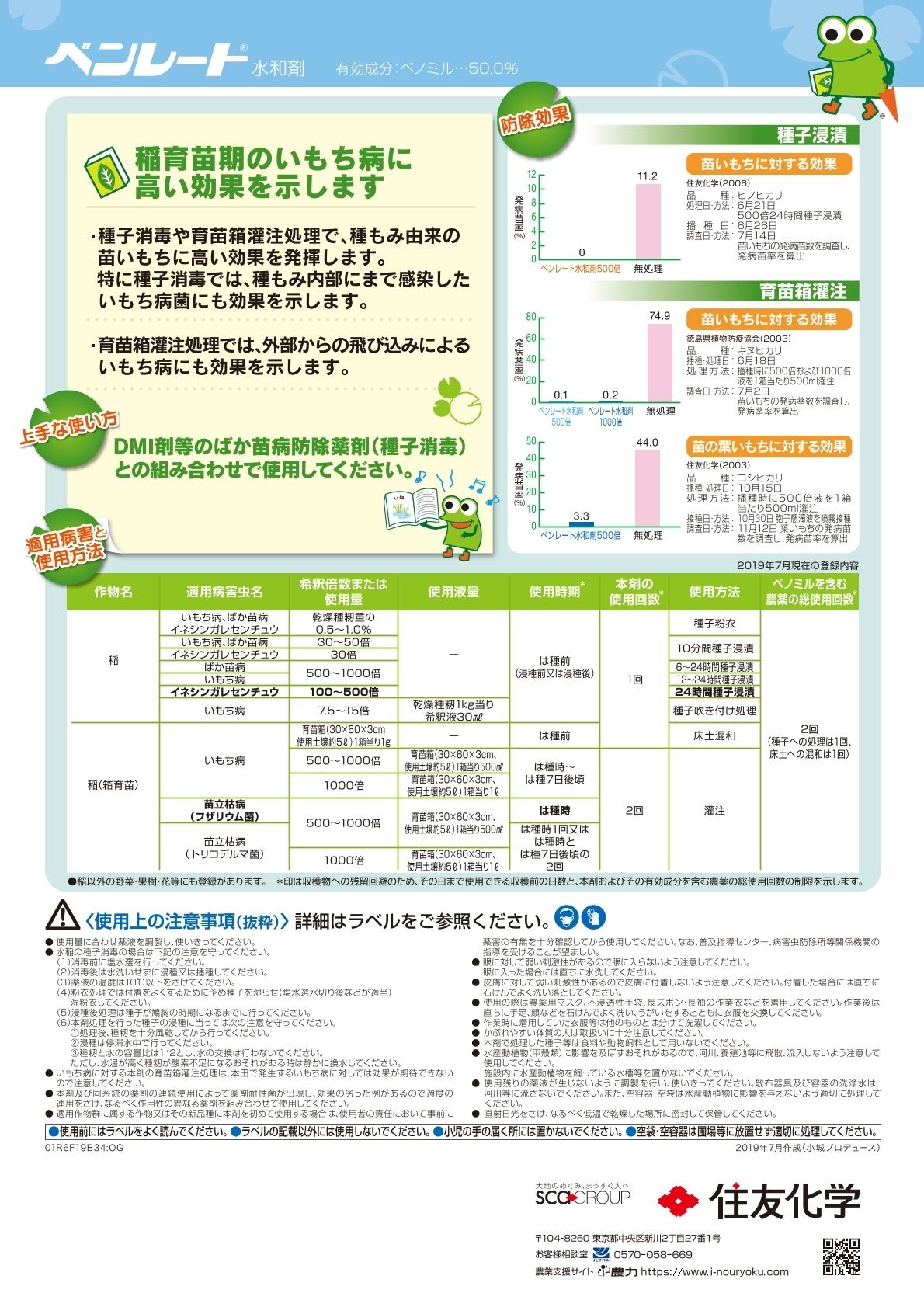・いもち病に対する本剤の育苗箱灌注処理は、本田で発生するいもち病に対しては効果が期待できないので注意する。