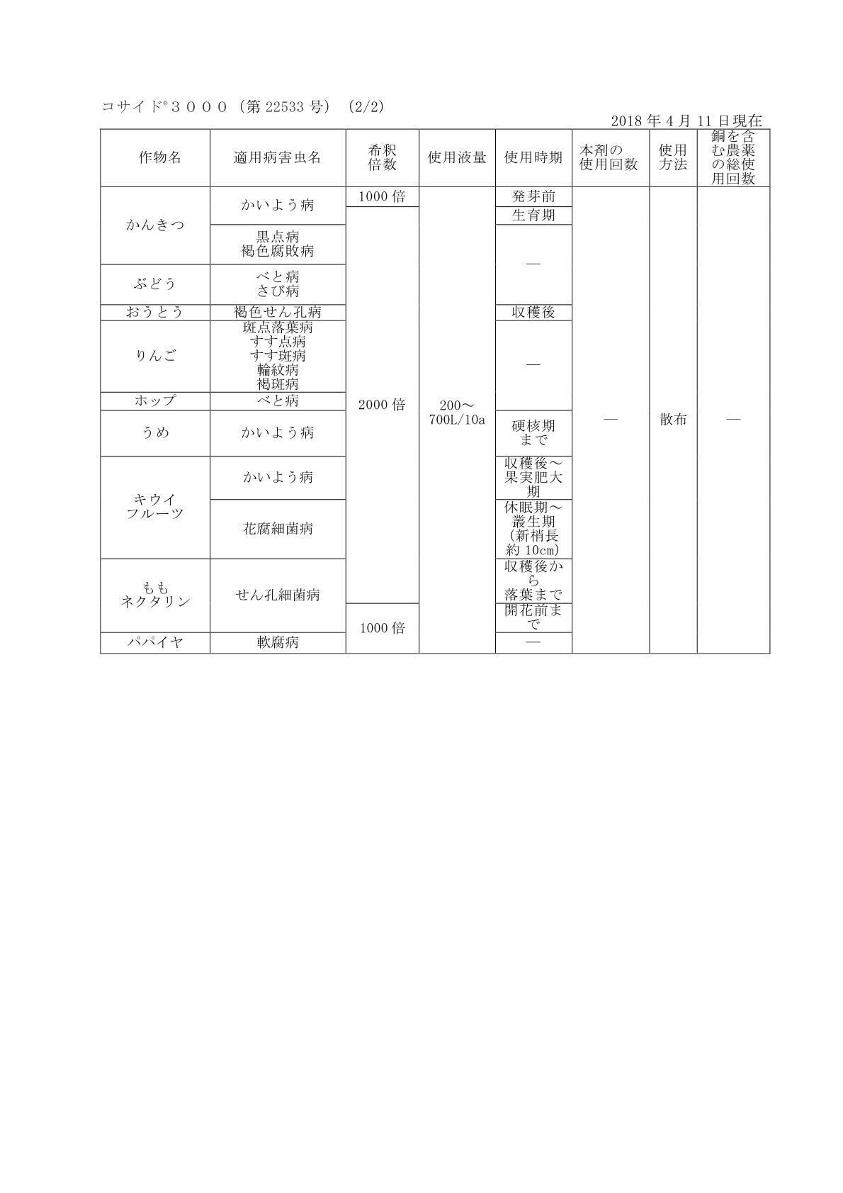 効成分:水酸化第二銅・・・46.1%(銅として・・・30.0%)