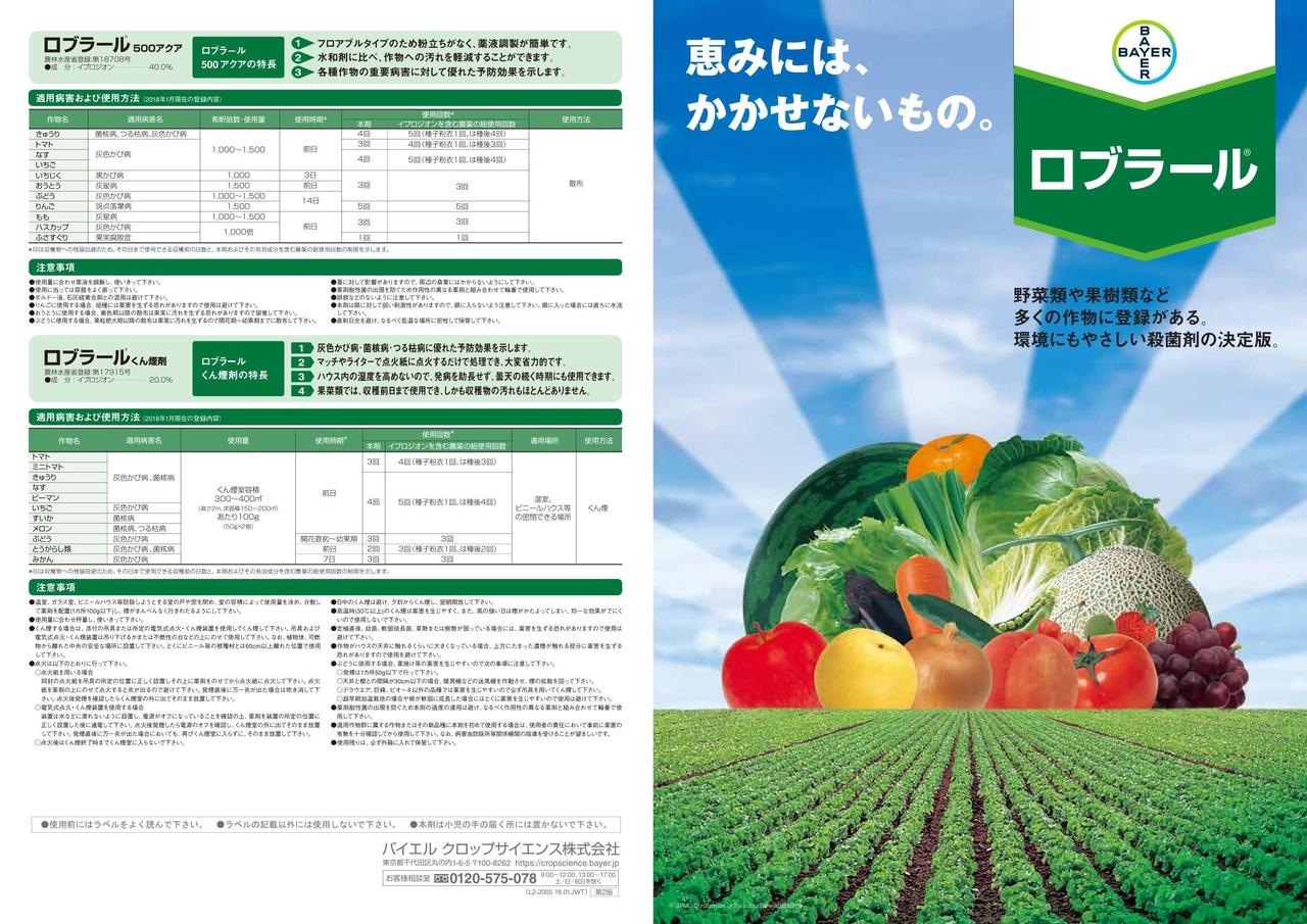 野菜・果樹のアルタナリア属菌、ボトリチス属菌、スクレロチニア属菌、モニリア属菌やヘルミントスポリウム属菌、カーブラリア属菌などによる重要病害に卓効を示します。