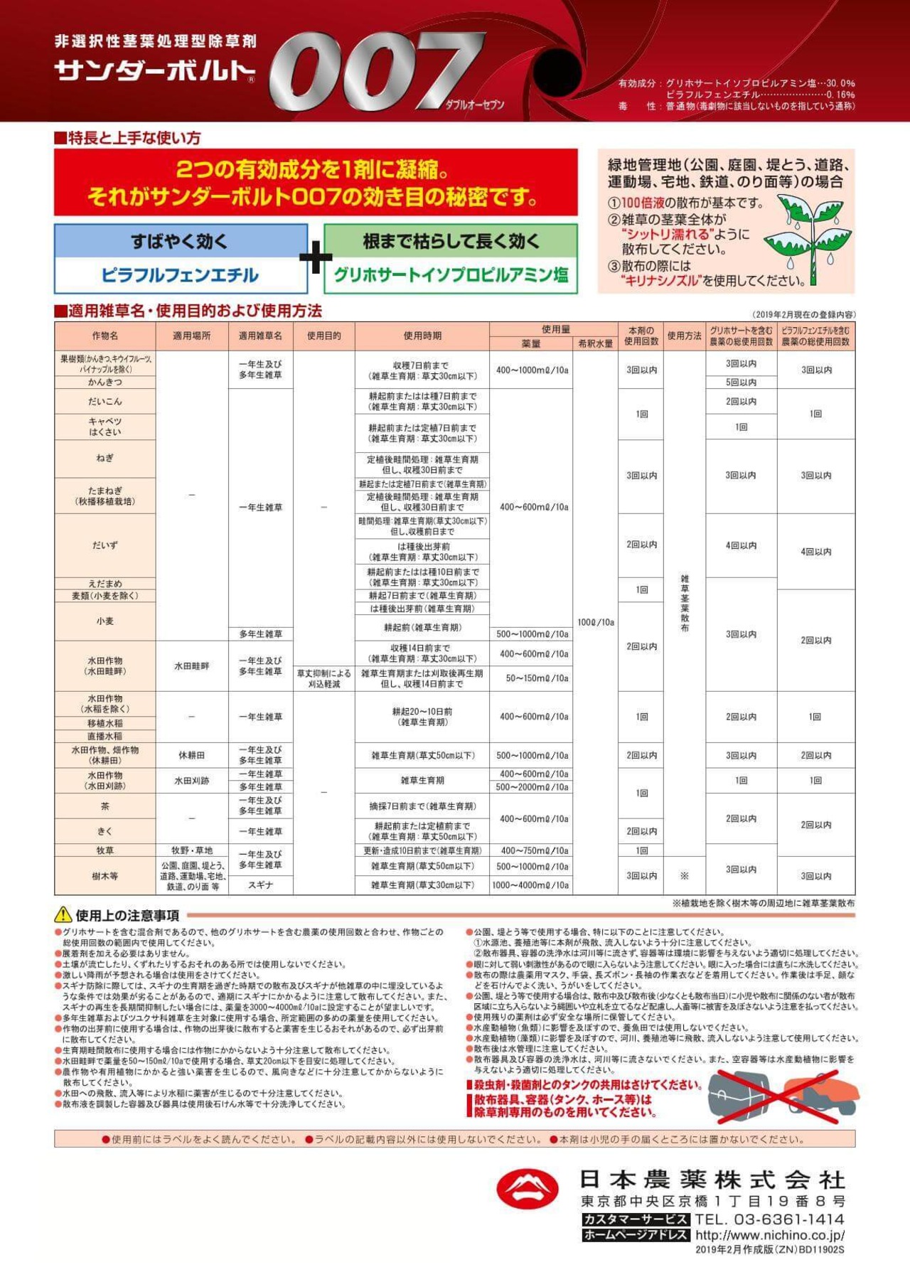 ・本剤はグリホサートを含む混合剤であるので、他のグリホサートを含む農薬の使用回数と合わせ、作物ごとの総使用回数の範囲内で使用する。